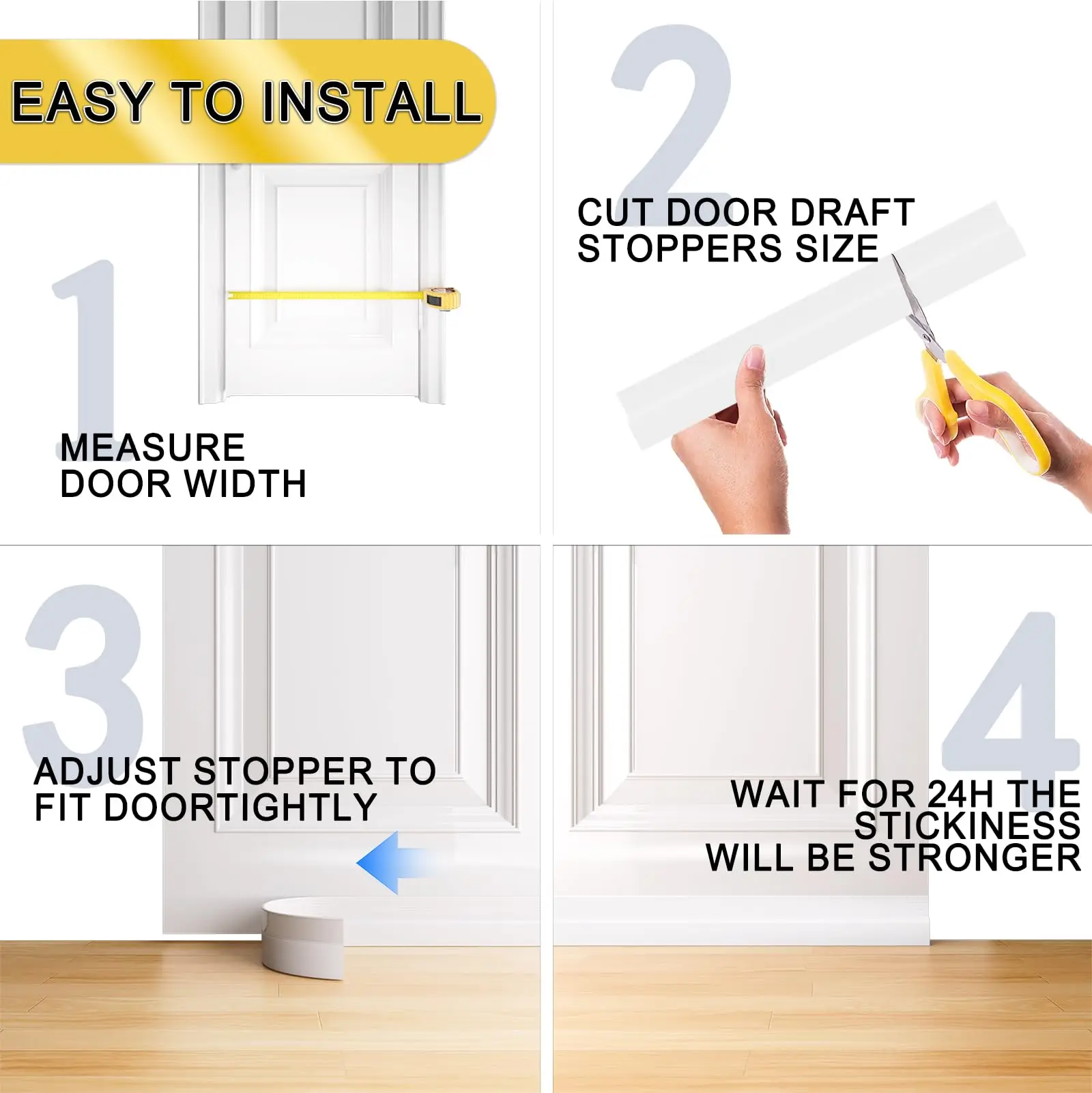 The draft stopper installs easily without drilling or permanent fixtures. It fits neatly along the bottom of the door, adapting to different floor surfaces and door widths.
