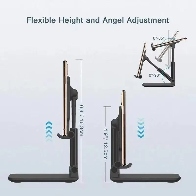 The Adjustable Phone Stand — Metal is designed to hold your phone securely at a comfortable viewing angle. It supports hands-free use for calls, videos, browsing, or work-related tasks.