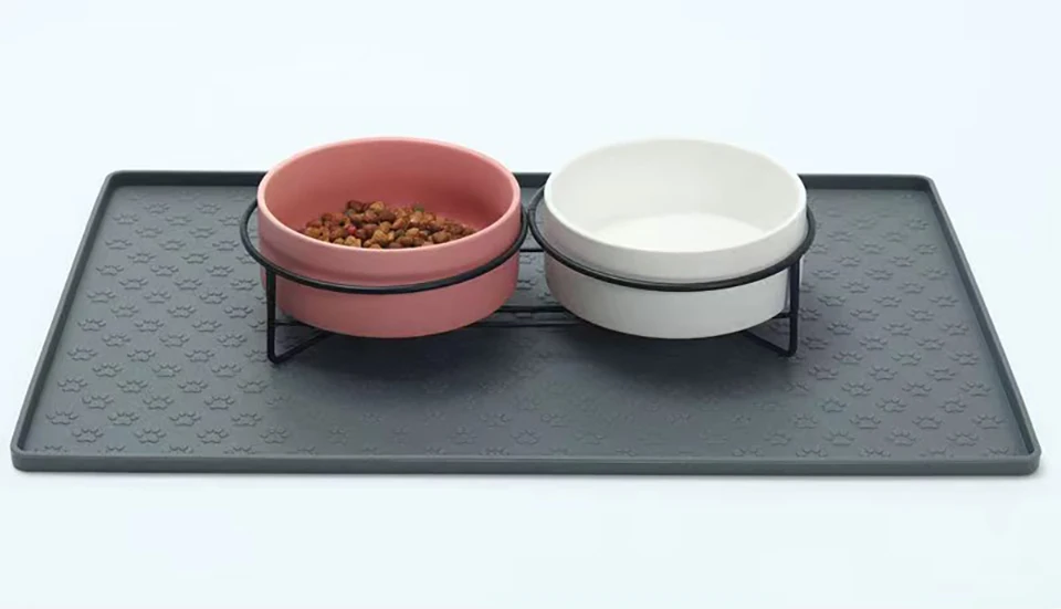 The mat can be placed under bowls and cleaned quickly after meals. Its flexible design allows for simple storage when not in use.